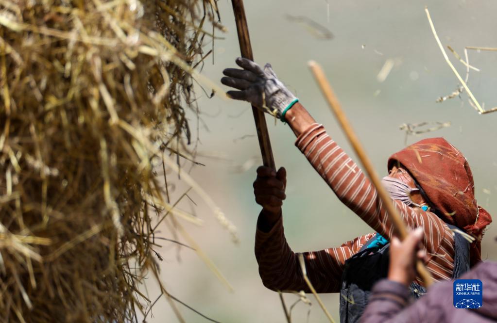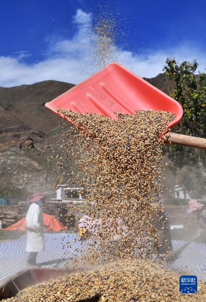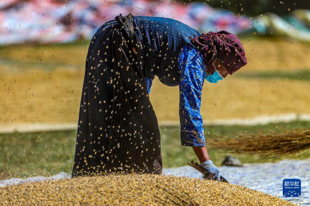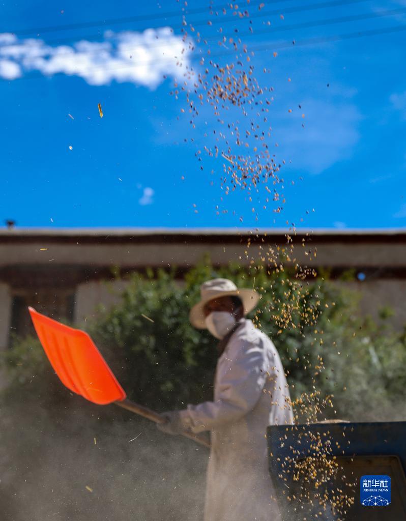 9月21日,拉薩市林周縣江熱夏鄉(xiāng)江夏村的村民在揚(yáng)場。新華社記者 覺果 攝
