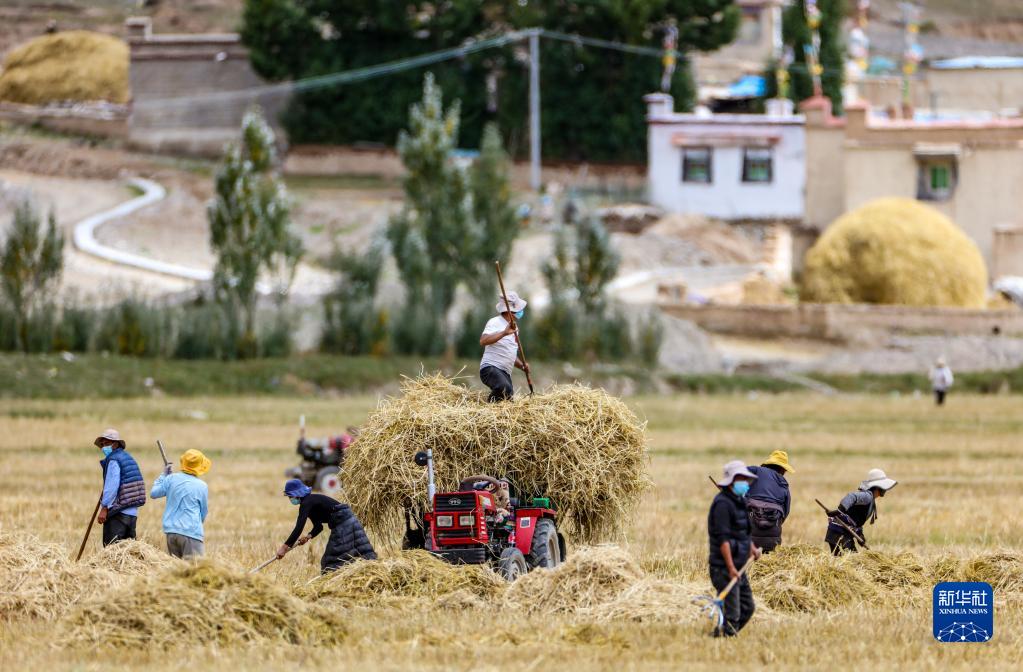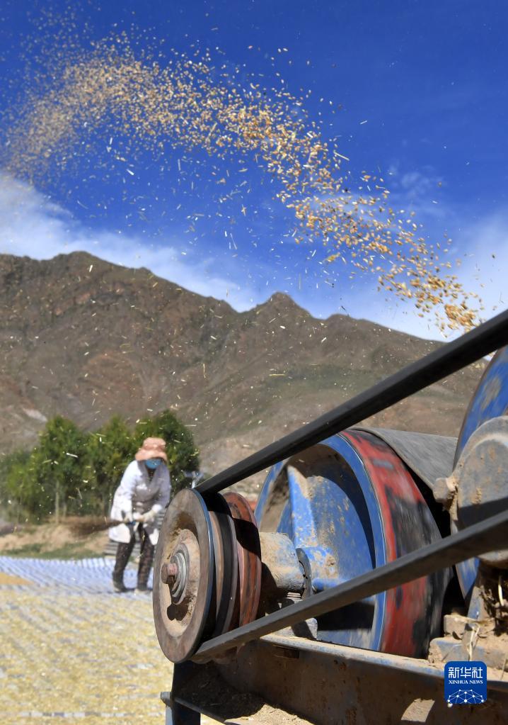 第五個(gè)中國農(nóng)民豐收節(jié)在即,西藏自治區(qū)拉薩市林周縣的田間地頭一片繁忙。據(jù)了解,林周縣目前累計(jì)糧食收獲面積為12.43萬畝,已收獲秋糧總產(chǎn)量預(yù)估6萬噸,豐收在望。