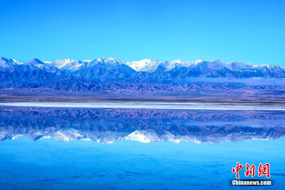 深秋已至,位于青藏高原的茶卡鹽湖,湖水逐漸純凈,鹽層開始結(jié)晶,平靜的湖面如同一面天然鏡子,反射著美麗的天空與遠處的雪山,形成水天一色的景象。茶卡鹽湖位于柴達木盆地的青海省海西蒙古族藏族自治州烏蘭縣茶卡鎮(zhèn)境內(nèi)。湖面海拔約3100米,湖面面積105平方公里。這里歷史悠久,文韻悠長,是中國鹽文化發(fā)源地之一,是天然的結(jié)晶鹽湖。由于湖面結(jié)晶鹽層上鹵水的反射形成鏡面效果,水天倒映,美不勝收,被稱為中國版“天空之鏡”。圖為水天一色景致。 王生榮 攝
