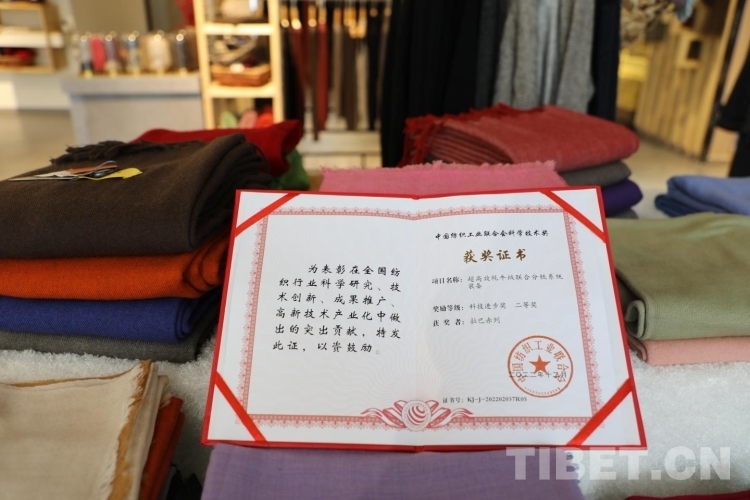 牦牛的生存環(huán)境決定了牦牛絨比普通羊毛更加保暖、柔軟,但也帶來了紡織上的技術難題。牦牛絨很細,纖維的卷曲較少并且卷曲形態(tài)不規(guī)則,成條成紗難度大。在不斷的探索中,團隊發(fā)現(xiàn)牦牛絨與蠶絲混紡能改善牦牛絨的可紡性,這解決了一大技術難題,公司還因此獲得知識產(chǎn)權專利及多項科學技術獎項。
