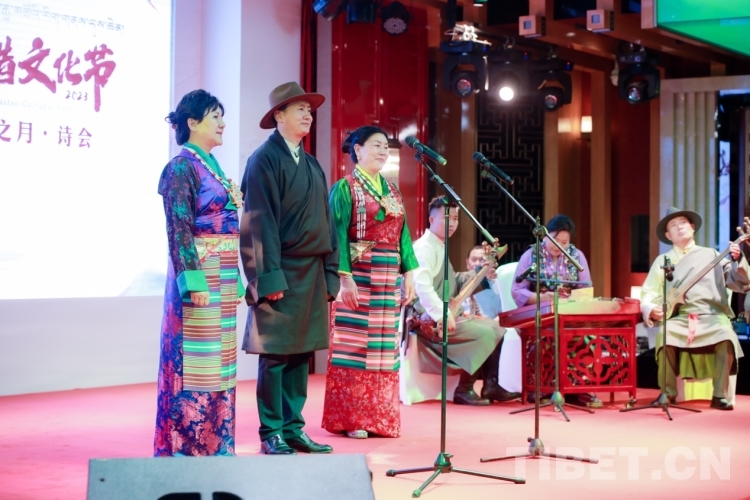本次詩會通過朗誦倉央嘉措代表作和其他經典文學、演唱富有民族特色的音樂作品、西藏國家級非物質文化遺產“藏戲”“朗瑪堆諧”等歌舞表演形式,重溫動人的詩歌,展示以倉央嘉措文化為代表的中國傳統(tǒng)文化的魅力。在“相約吉祥之月”詩會上,著名主持人、朗誦家任志宏,朗誦藝術家徐濤,配音藝術家、著名主持人“金龜子”劉純燕等文化名人朗讀了《在那東山頂上》《心上之人》《愛在心中》《杜鵑》《無心木船》等詩歌,以飽含情感的配樂朗誦,帶領現(xiàn)場嘉賓走進倉央嘉措的世界。