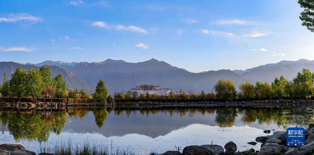這是在拉魯濕地拍攝的拉薩風(fēng)光,蔥蘢的樹木點(diǎn)綴在城市中,與山色相映成趣(5月12日攝)。新華社記者 姜帆 攝