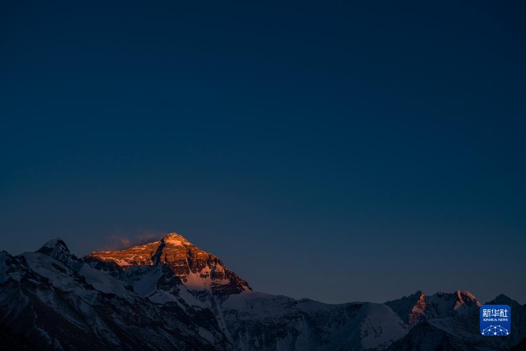 這是5月9日日落時(shí)分拍攝的珠穆朗瑪峰。新華社記者 孫非 攝