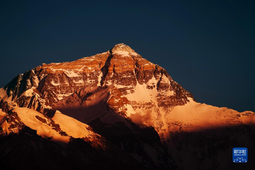6月4日,最后一抹陽(yáng)光即將從珠峰頂上消逝。新華社記者 費(fèi)茂華 攝