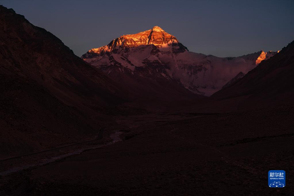6月4日拍攝的太陽(yáng)完全落山之后的珠峰。新華社記者 費(fèi)茂華 攝