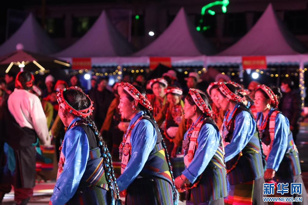 7月23日,在西藏定日2023珠峰音樂美食節(jié)現(xiàn)場,民間藝術(shù)團(tuán)表演國家級(jí)非物質(zhì)文化遺產(chǎn)定日洛諧。新華網(wǎng)發(fā) 李騰 攝