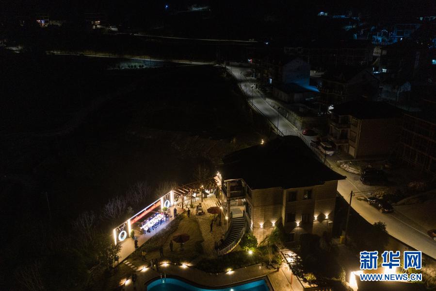 2月22日,桐廬縣鐘山鄉(xiāng)鄉(xiāng)賢代表、民宿業(yè)主代表、桐廬縣鄉(xiāng)兩級人大代表以及黨員和村民代表在鐘山鄉(xiāng)參加“新村夜話”討論活動(無人機(jī)照片)。新華社記者 徐昱 攝