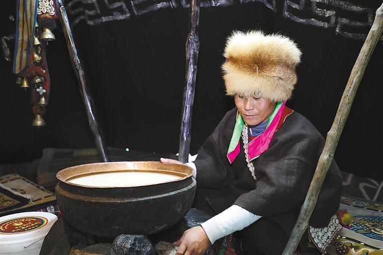 文化賦能同樣為產(chǎn)業(yè)注入靈魂。村集體打造的“艾·邱多江牧人生活體驗(yàn)館”,將黑帳篷、牛皮筏、酥油茶桶等牧區(qū)生活器具轉(zhuǎn)化為文旅“IP”。游客可體驗(yàn)擠牦牛奶、打酥油、跳鍋莊,品嘗現(xiàn)烤的藏香羊排。“去年,接待了300多名游客,帶動(dòng)群眾增收5萬多元。”扎西卓瑪告訴記者。如今,牧業(yè)與文旅的融合,正讓瑪如村的“牧區(qū)故事”傳向更遠(yuǎn)方。